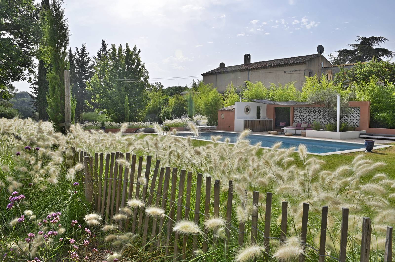 Provence nature services à réalisé un superbe jardin méditerranéen implanté autour de la piscine d'une jolie maison à Aix en Provence.