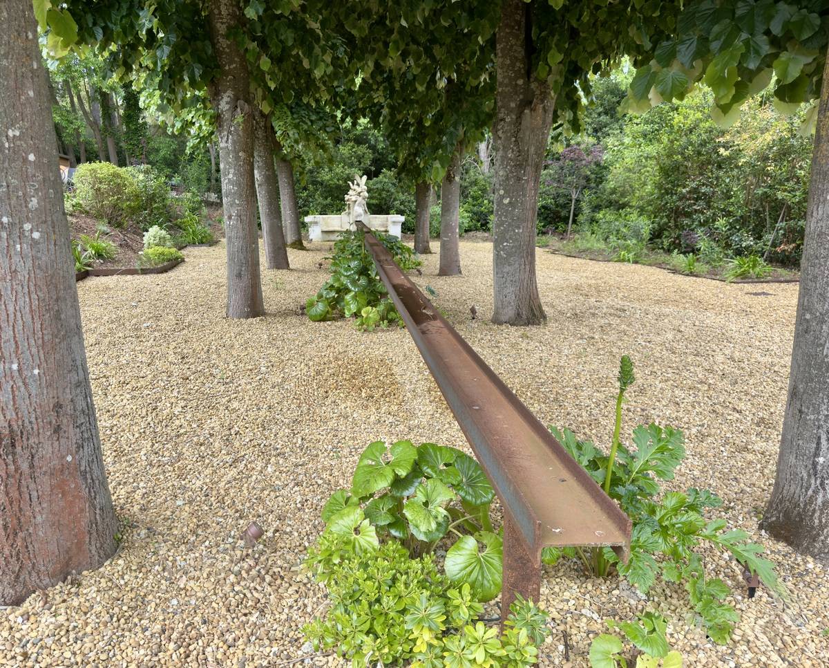 Un élément fort du projet est la création d’un bassin ligne d’eau en acier corten, structuré sur 18 mètres, pour un rendu contemporain et raffiné.