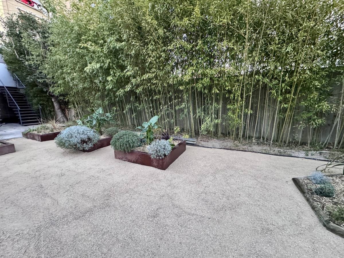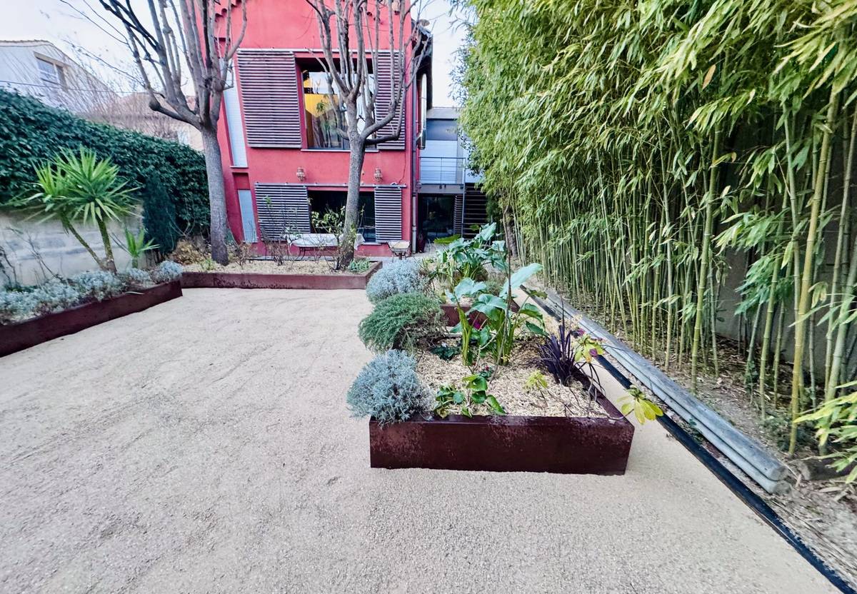 Provence Nature Services est intervenu pour réaliser un entretien complet et une revalorisation paysagère d’un jardin urbain intégrant balcon, jardinières et zones minérales.